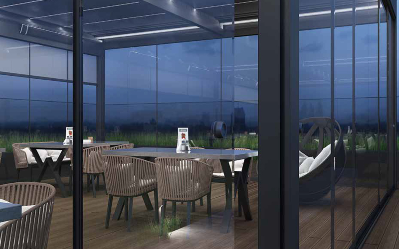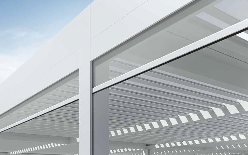 Nutzen Sie die bioklimatischen Vorzüge der Pergola-Systeme “SANTORINI” und “MYKONOS” und kombinieren Sie Ihre Pergola mit einem modernen und funktionalen Glass Schiebesystem. So entsteht eine transparente Wand, die die Sonne hinein, den Wind aber draußen lässt.